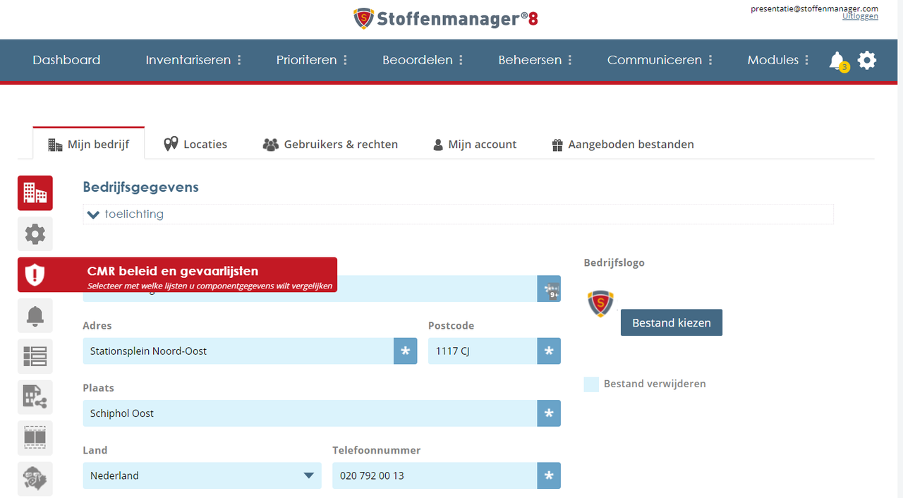 Stoffenmanager® is dé tool om gevaarlijke stoffen in kaart te brengen en te beheren. Uiteraard is er extra aandacht voor CMR-stoffen in Stoffenmanager®. De CMR-registratie valt onder het gedeelte “Inventariseren” en de CMR-stoffen zijn te herkennen aan het rode schildje.